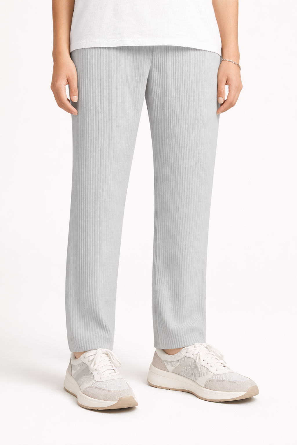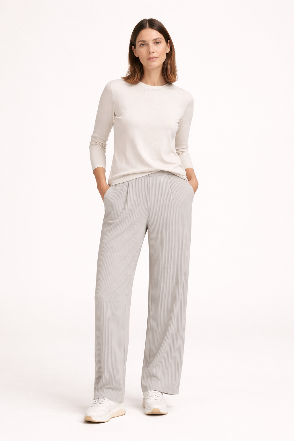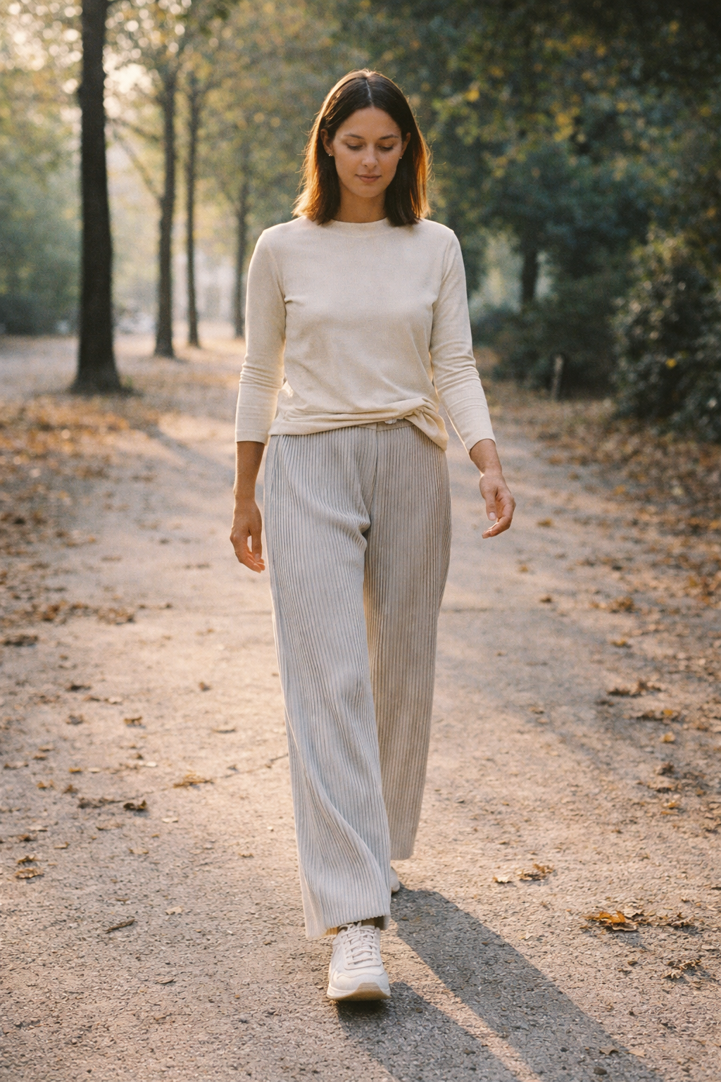 Miyake-inspired pleated fabric. You leave the house looking put-together — not like you grabbed what hurts least. Because you shouldn't have to choose.