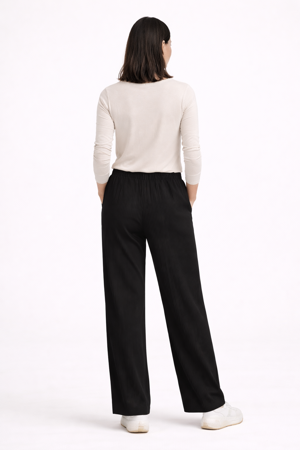 "Finding trousers that fit my body properly has always been nearly impossible. The elastic waist and wide leg accommodate without squeezing or gaping. Would love even more colours."
